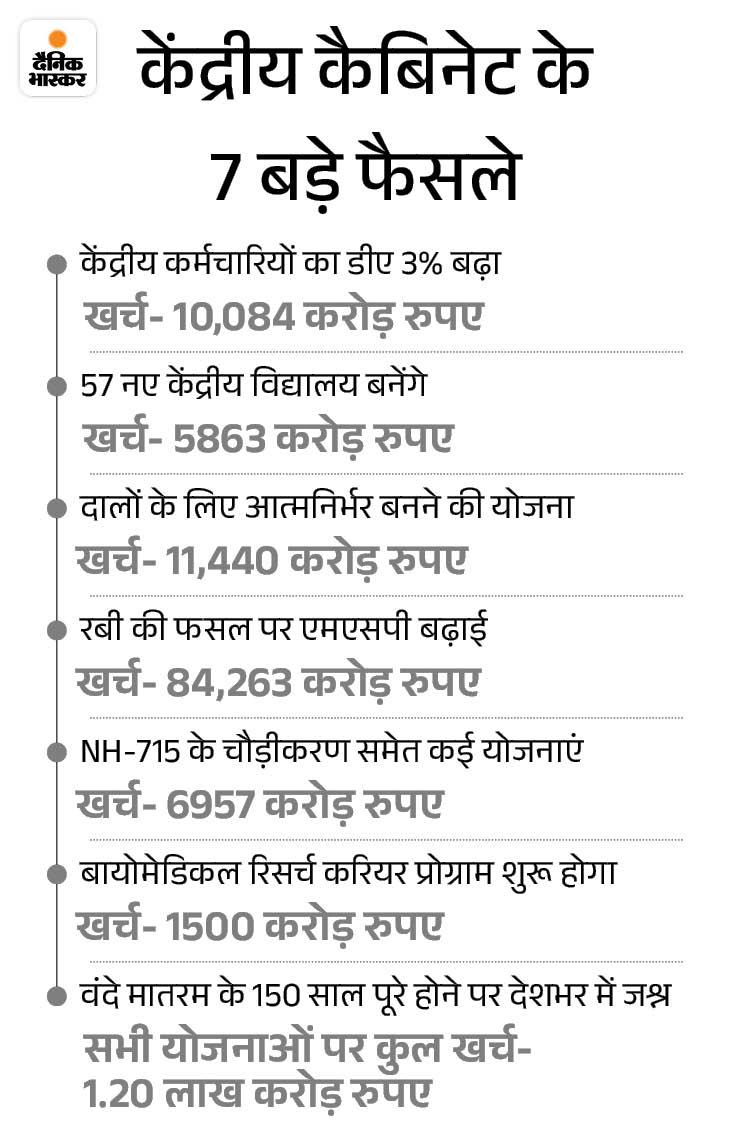 - दालों के मामले में आत्मनिर्भर बनाने के लिए 11,440 करोड़ रुपए की योजना का एलान। 6 साल में पूरी तरह लागू होगा।