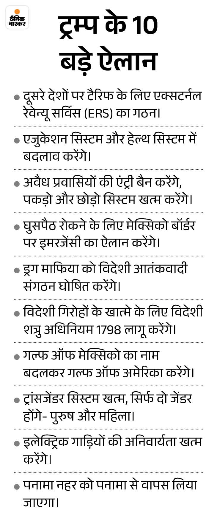 1. डोनाल्ड ट्रम्प दोबारा अमेरिकी राष्ट्रपति बने; कहा- दूसरे देशों पर टैरिफ के लिए नया डिपार्टमेंट बनाएंगे