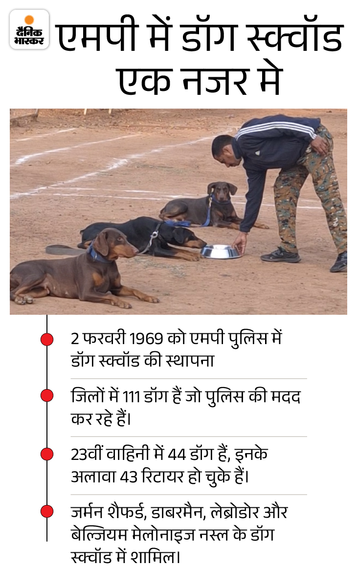 इस समय भोपाल समेत सभी जिलों में कुल 111 पुलिस डॉग हैं। इनमें ज्यादातर विदेशी नस्ल के हैं। इन्हें किस तरह प्रशिक्षण दिया जाता है, क्या प्रोसेस होती है और भविष्य में डॉग स्क्वॉड को किस अपराध के लिए प्रशिक्षित किया जा रहा है, पढ़िए रिपोर्ट…