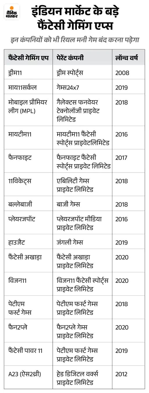 भारत में इस साल अगस्त में ऑनलाइन मनी बेस्ड गेमिंग पर बैन लगा था।