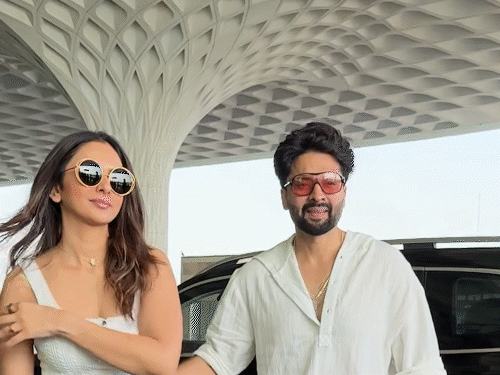 फिल्मफेयर सेरेमनी में हिस्सा लेने के लिए रकुल प्रीत पति जैकी भगनानी के साथ रवाना।