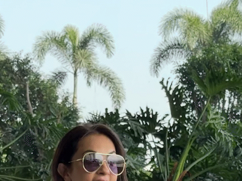 निम्रत कौर पैपराजी को पोज देते हुए नजर आईं।