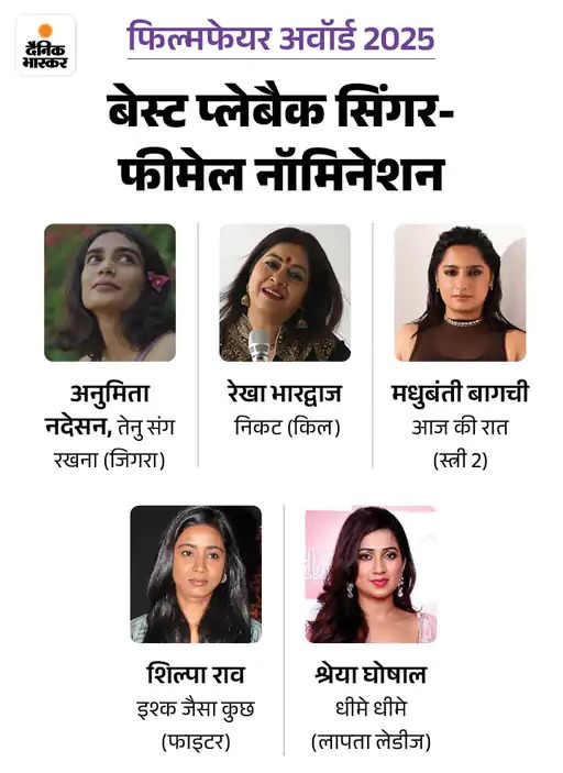 इससे पहले सबसे ज्यादा 23 नॉमिनेशन हासिल कर शाहरुख खान की फिल्म कभी अलविदा न कहना पहले नंबर पर थी। ‘लापता लेडीज’ अगर 13 से ज्यादा अवॉर्ड हासिल करती है, तो गली बॉय का रिकॉर्ड भी तोड़ सकती है। इस साल बेस्ट फिल्म के लिए ‘स्त्री 2’ को 8 और ‘भूल भुलैया 3’ को 5 नॉमिनेशन मिले हैं।