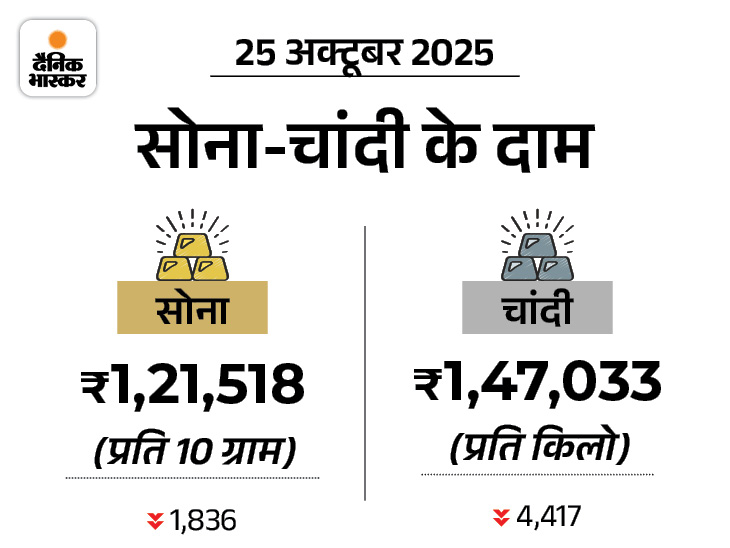 1. सोना एक दिन में ₹1,836 और चांदी ₹4,417 सस्ती: 7 दिन में सोने की कीमत ₹9,356 घटी, चांदी में ₹31 हजार की गिरावट