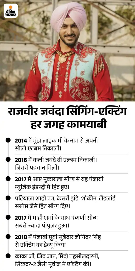 जवंदा का हिमाचल में एक्सीडेंट के बाद हो गया था निधन पंजाबी गायक राजवीर जवंदा का 8 अक्टूबर 2025 को मल्टी-ऑर्गन फेलियर से निधन हो गया था। 27 सितंबर को पिंजौर के पास एक सड़क दुर्घटना में वह घायल हो गए थे, जब एक सांड से बचने के दौरान उनकी बाइक जीप से टकरा गई थी। उन्हें मोहाली के एक निजी अस्पताल में भर्ती कराया गया था। यहां 11 दिनों तक वेंटिलेटर पर रहने के बाद उनका निधन हो गया।