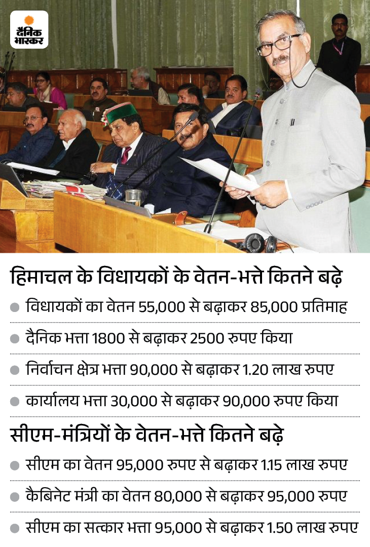 हिमाचल में विधायकों की सैलरी-भत्ते मई 2016 में आखिरी बार बढ़े थे। लगभग 9 साल बीतने के बाद दोबारा इनके वेतन-भत्ते में वृद्धि हुई थी।
