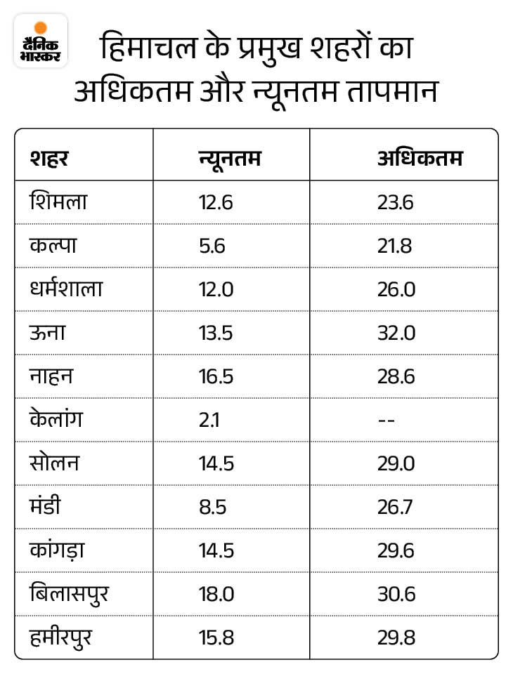 Himachal Pradesh Weather will remain dry | Shimla Manali Dharmshala weather| IMD | हिमाचल में 6 दिन शुष्क रहेगा मौसम: 3 शहरों के रात के तापमान में गिरावट; केलांग का पारा 2.1 डिग्री, ऊना का 32 पहुंचा – Shimla News