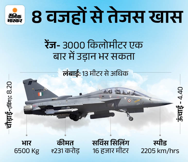 रिपोर्ट्स के मुताबिक हर तेजस मार्क-1ए की औसत कीमत 600 करोड़ रुपए है। फाइटर जेट रफ्तार 2205 किमी/घंटा यानी ध्वनि से भी करीब दोगुनी तेज है।