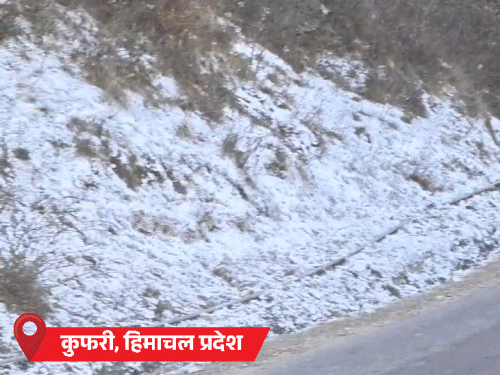 हिमाचल के कुफरी में गुरुवार को पाला की मोटी परत जम गई। जो बर्फ की तरह दिख रही थी।