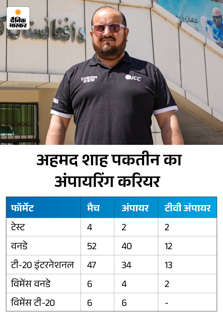 सवाल: भारत-पाकिस्तान जैसे मैचों में अंपायरिंग करना कैसा लगता है? अहमद शाह: यह हर अंपायर का सपना होता है। दबाव जरूर होता है, लेकिन मेहनत और फोकस से इसे संभाला जा सकता है।