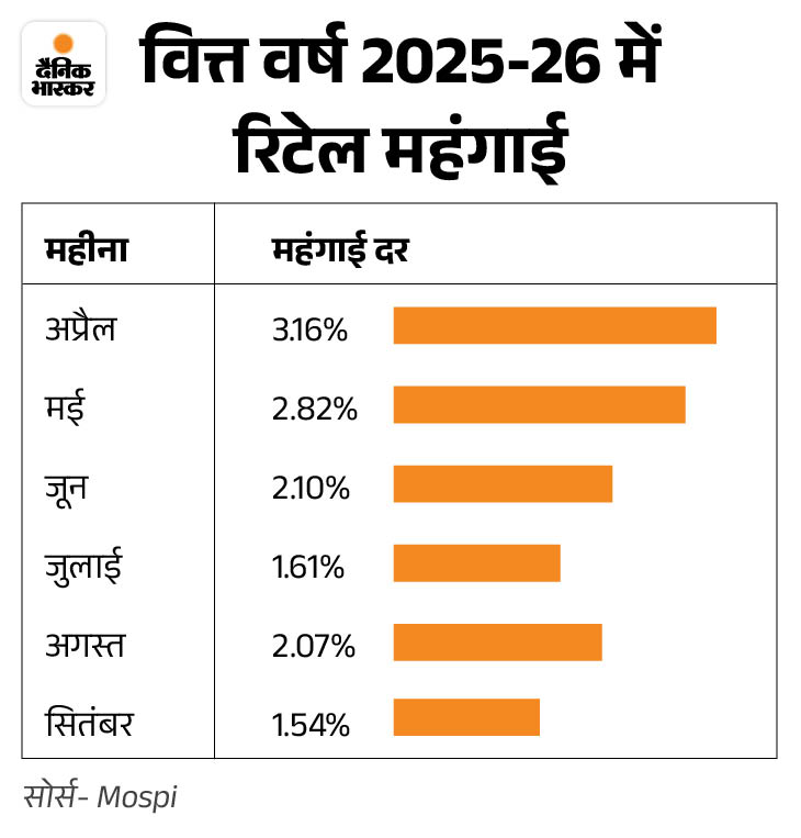रिटेल महंगाई 8 साल में सबसे कम: सितंबर में घटकर 1.54% पर आई, खाने-पीने का सामान सस्ता होने का असर; अगस्त में 2.07% थी