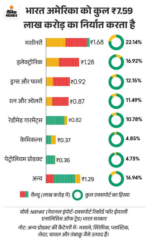 ट्रम्प ने भारत के रूस से तेल और सैन्य उपकरण खरीदने पर भी नाराजगी जताई थी। इसी वजह से 25% का एडिशनल टैरिफ भी लगाया गया। यानी, कुल 50% टैरिफ लगाया है।