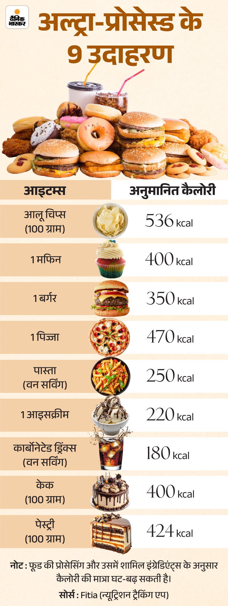 इनमें फ्रोजन फूड्स, शुगरी ड्रिंक्स, प्रोसेस्ड मीट, इंस्टेंट नूडल्स, पिज्जा, बर्गर, मोमोज, फ्रेंच फ्राईज, चिप्स, नमकीन, कुकीज, केक और मफिन जैसे प्रोडक्ट्स शामिल होते हैं, जो दिखने और खाने में तो लाजवाब होते हैं, लेकिन स्वास्थ्य के लिए बेहद नुकसानदायक हैं।