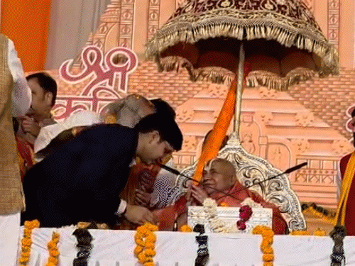 डीएम-एसपी ने रामभद्राचार्य के पैर छुए