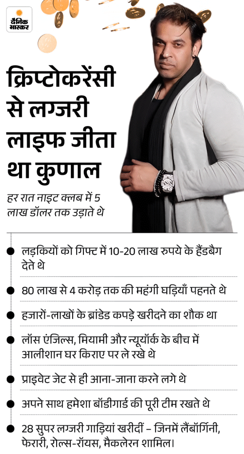 कोर्ट में दो केसों का हवाला दिया गया कुणाल पर दर्ज दो केसों को कोर्ट में रखा गया। इनमें आरोप लगाया गया है कि 18 अगस्त, 2024 को मेहता के साथी मैलोन लैम और एक अन्य सहयोगी ने कोलंबिया में एक युवक से संपर्क किया और उससे धोखाधड़ी से 4,100 से अधिक बिटकॉइन प्राप्त किए। इसका मूल्य उस समय 263 मिलियन डॉलर था। इस सप्ताह इसका मूल्य 384.5 मिलियन डॉलर से अधिक है।