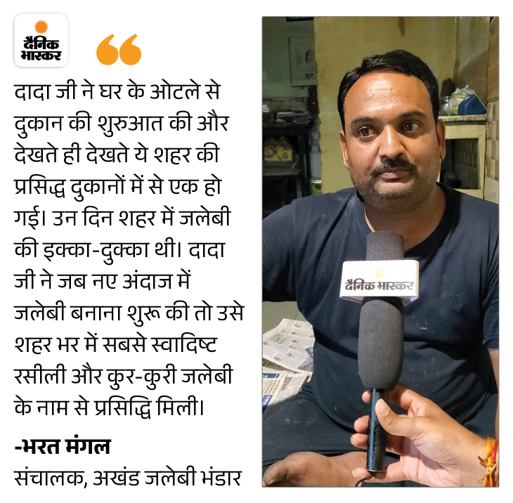 दैनिक भास्कर ‘जायका’ सीरीज में आइए इस बार आपको ले चलते हैं छावनी के 101 साल पुराने अखंड जलेबी भंडार पर…