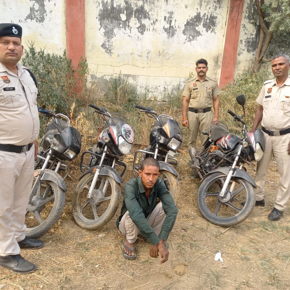 हरियाणा के नूंह में वाहन चोरी के सक्रिय गिरोह से जुड़े एक युवक को नूंह पुलिस ने गिरफ्तार कर लिया है। उसकी निशानदेही पर चोरी की 4 मोटरसाइकिल बरामद की गई है। उसकी पहचान गांव रानीका थाना नूंह निवासी मुस्तकीम उर्फ खोपट के रूप में हुई है। फिलहाल चोरी के 4