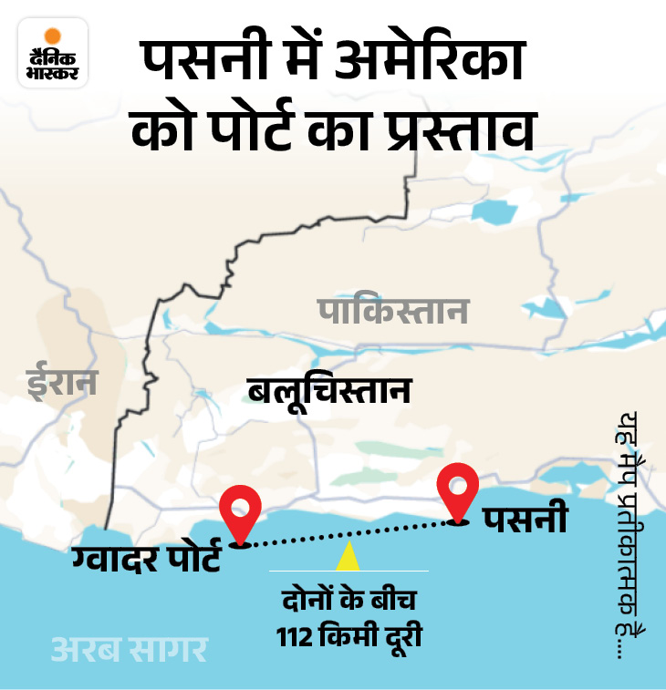 प्रस्ताव में साफ कहा गया है कि यह बंदरगाह सिर्फ व्यापार और खनिजों के लिए है। अमेरिका को यहां सैन्य बेस बनाने की इजाजत नहीं होगी। पासनी, ग्वादर पोर्ट (चीन का बंदरगाह) से सिर्फ 112 किमी दूर है।