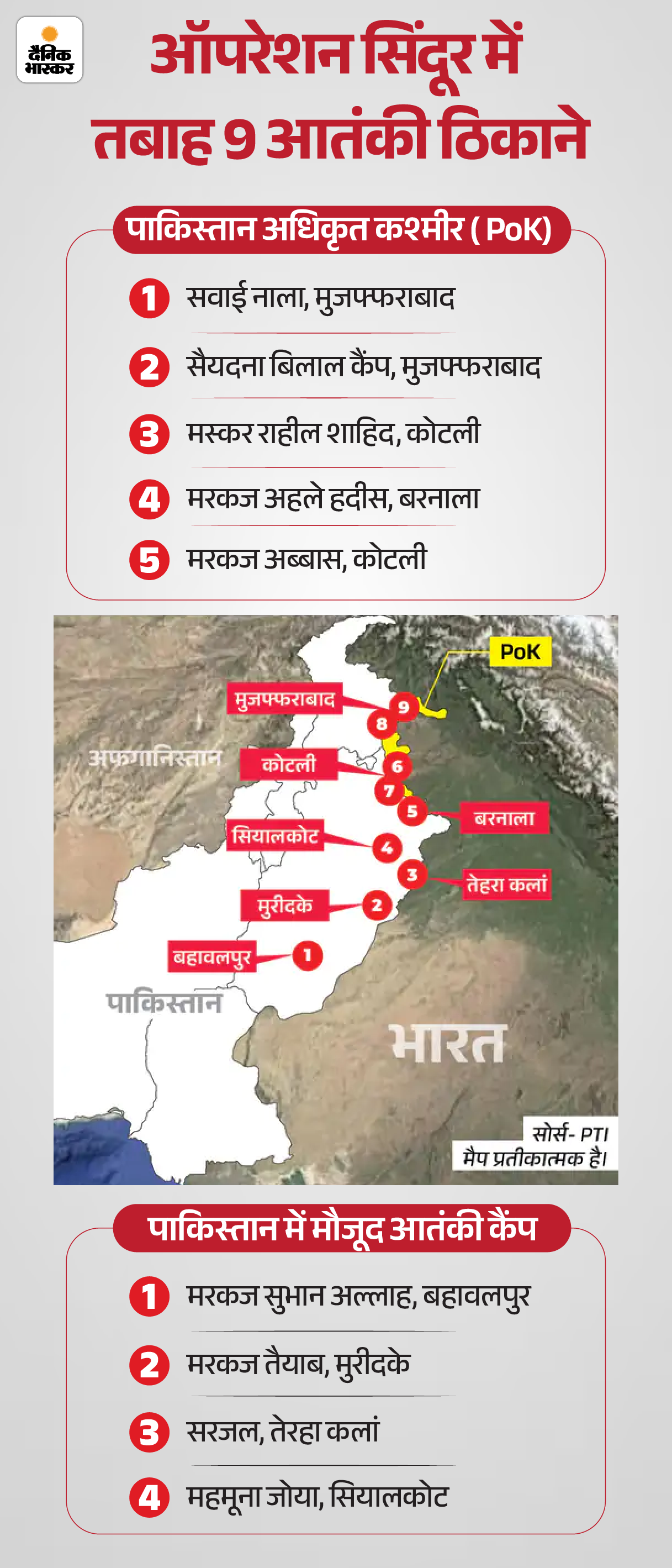 पहलगाम घटना के 15 दिन बाद 6 मई देर रात सेना ने पाकिस्तान और PoK में एयर स्ट्राइक की। 25 मिनट में 9 आतंकी ठिकाने तबाह कर दिए थे। 100 से ज्यादा आतंकियों को ढेर कर दिया। यहीं आतंकियों को ट्रेनिंग दी जाती थी। भारत ने इसे ‘ऑपरेशन सिंदूर’ नाम दिया। क्योंकि आतंकियों ने देश की बहन-बेटियों का सुहाग उजाड़ा था।
