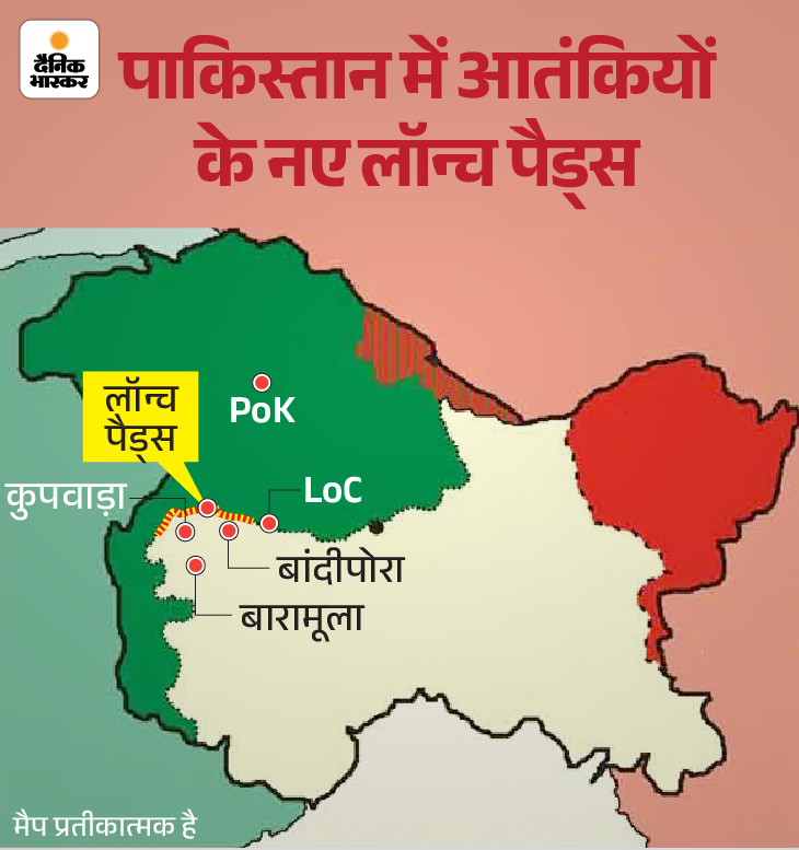 जम्मू-कश्मीर में लाइन ऑफ कंट्रोल (LoC) पर पाकिस्तान के कब्जे वाले इलाके में 68 लॉन्चपैड सक्रिय हैं। वहां 110 से 120 आतंकी जम्मू-कश्मीर में घुसने की तैयारी कर रहे हैं। खुफिया एजेंसियों ने दैनिक भास्कर को ये एक्सक्लूसिव जानकारी दी है।