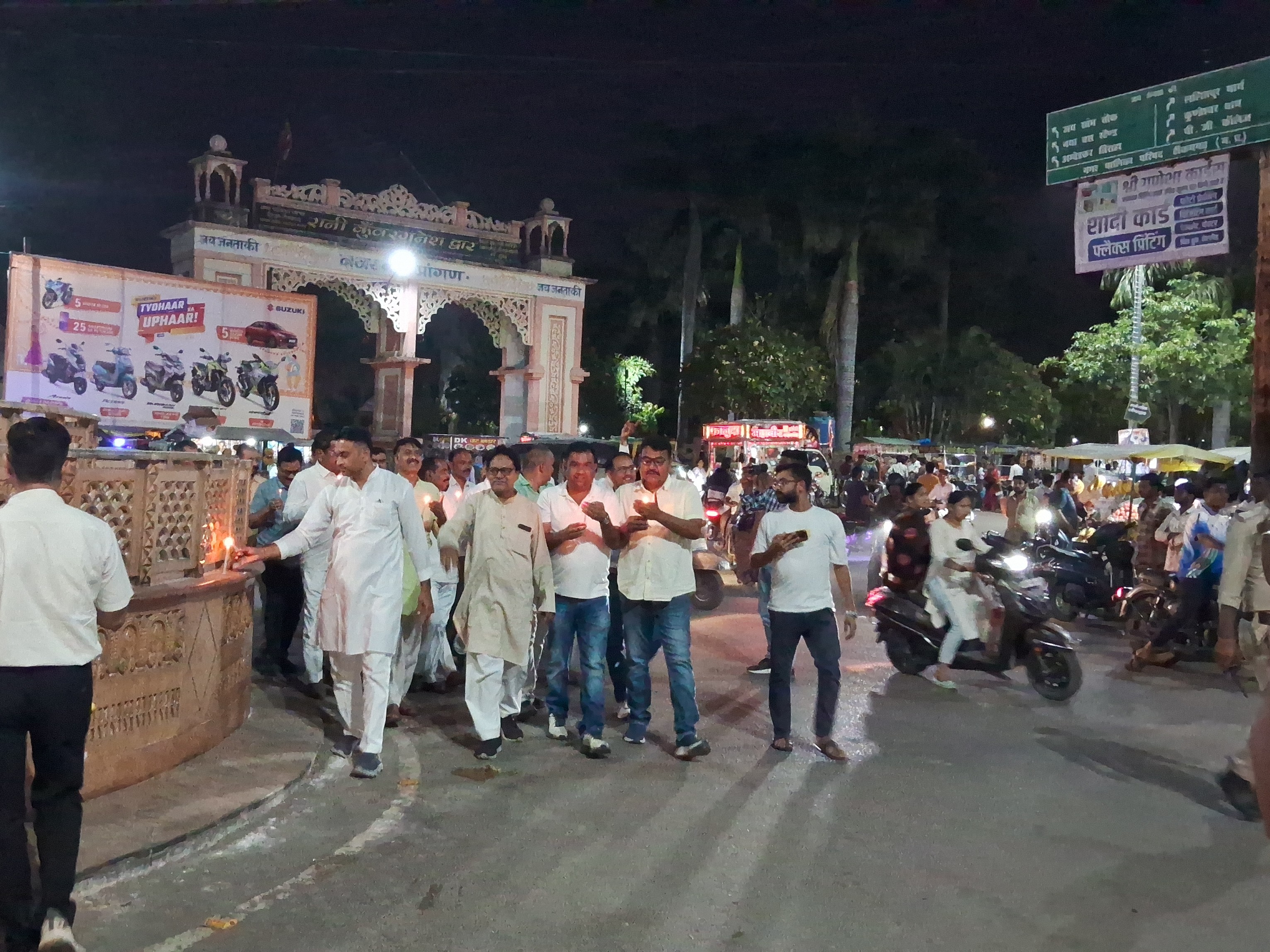 यह प्रदर्शन शाम 6:30 बजे शुरू हुआ। कांग्रेस जिला अध्यक्ष नवीन साहू के नेतृत्व में कार्यकर्ताओं ने गांधी चौराहे से एसबीआई चौराहा होते हुए वापस गांधी चौराहे तक कैंडल मार्च निकाला। इस दौरान उन्होंने सरकार के खिलाफ नारेबाजी भी की।