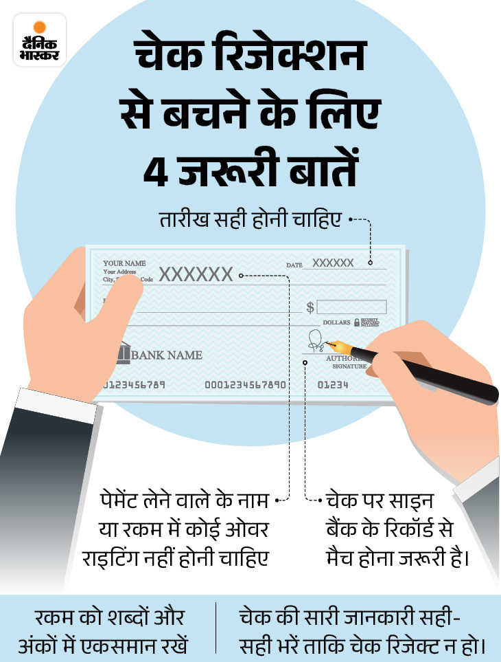 बैंक चेक मिलने पर इन डिटेल्स को चेक करेगा। अगर सब कुछ मैच हुआ तो चेक क्लियर हो जाएगा, नहीं तो रिजेक्ट हो जाएगा। ऐसे में आपको डिटेल्स दोबारा देनी होंगी।