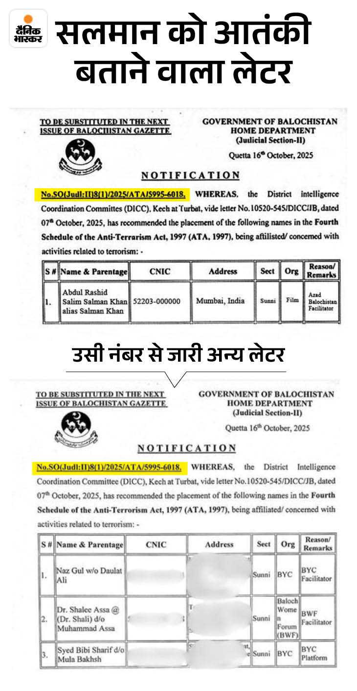 Salman Khan Terrorist Vs Pakistan; Balochistan Remark Controversy | सलमान खान को आतंकी बताने वाली चिट्ठी वायरल: दावा- पाकिस्तान ने आतंकियों की लिस्ट में डाला; एक्टर ने बलूचिस्तान को पाकिस्तान से अलग बताया था