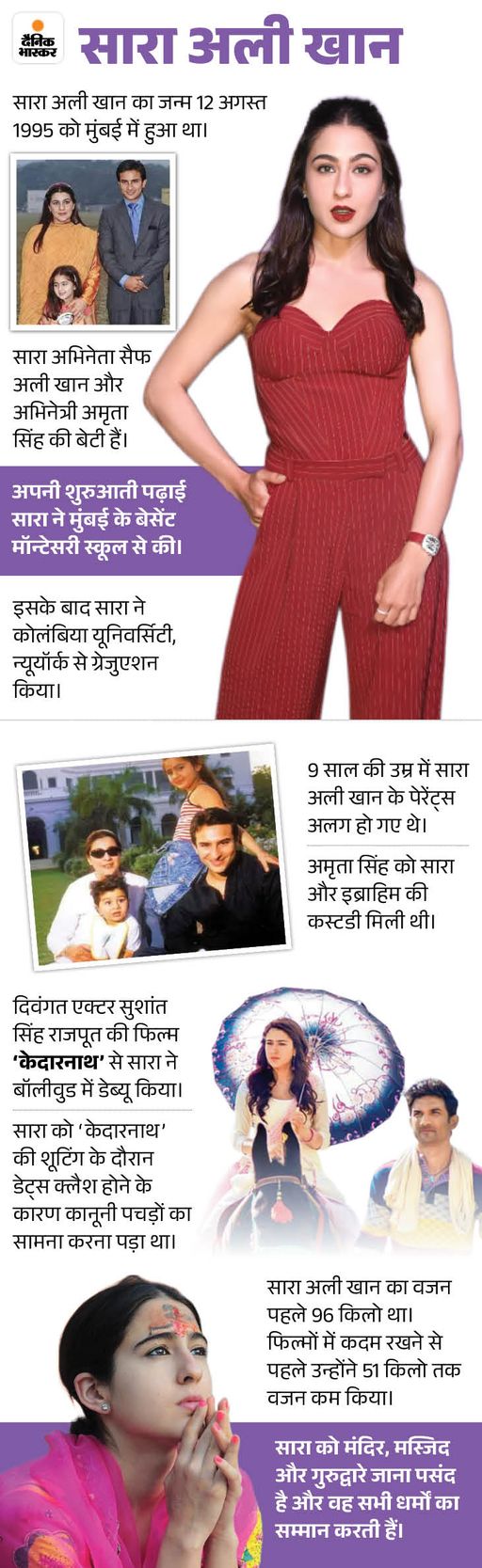 बॉलीवुड एक्ट्रेस सारा अली खान इन दिनों अपनी फिल्मी दुनिया से छुट्टी लेकर पहाड़ों की सैर पर निकली हैं। उत्तराखंड पहुंची सारा ने आज 20 किलोमीटर की ट्रैकिंग पूरी कर बाबा रुद्रनाथ के दर्शन भी कर लिए हैं।
