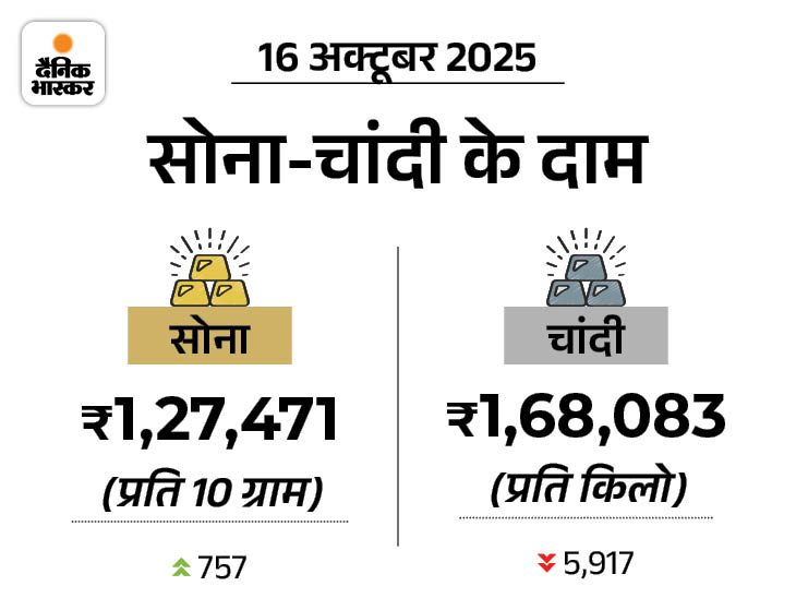 1. चांदी दो दिन में ₹10 हजार सस्ती हुई:लगातार 20 दिन में ₹35,666 चढ़ा था भाव; सोना ₹1.27 लाख के पार, इस साल ₹51 हजार बढ़ा