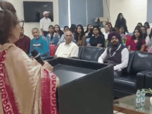 पंचकूला निफ्ट संस्थान में छात्राओं से बात करते हुए महिला आयोग अध्यक्षा रेनू भाटिया।